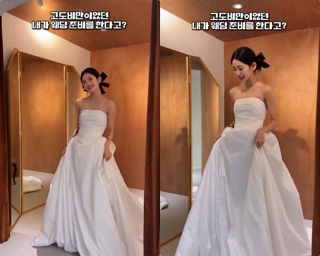 공개된 영상에는 "고도비만이었던 내가 웨딩 준비를 한다고?"라는 자막과 함께 다이어트 전후 모습이 비교돼 담겼다. 과거 통통했던 모습과 달리, 체중 감량에 성공한 뒤 웨딩드레스를 피팅하는 현재의 모습이 눈길을 끌었다. 특히 쇄골 라인이 도드라질 만큼 슬림해진 몸매로 시선을 모았다.
