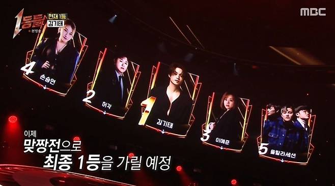 줄 세우기전 결과 1등 김기태, 2등 허각, 3등 이예준, 4등 손승연, 5등 울랄라세션이 맞짱전에 진출했다.