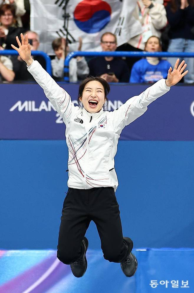 | ‘한국선수 MVP’ 김길리의 도약 한국 여자 쇼트트랙 국가대표 김길리가 21일 열린 2026 밀라노-코르티나담페초 겨울올림픽 쇼트트랙 여자 1500m에서 금메달을 획득한 뒤 시상대에 올라 펄쩍 뛰며 기뻐하고 있다. 김길리는 자신의 첫 올림픽에서 금 2개, 동메달 1개를 획득하며 이번 대회 한국 선수 중 유일하게 2관왕에 올랐다. 22일 발표된 한국 선수단 최우수선수(MVP)도 그의 차지였다. 밀라노=전영한 기자 scoopjyh@donga.com |