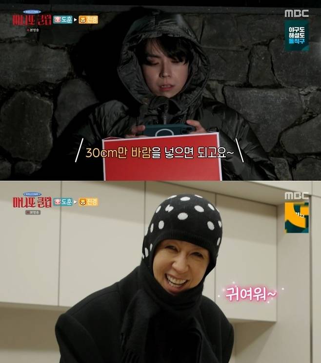 홍진경은 김도훈이 준비한 신박한 핫팩 조끼를 받아 들고 "미치고 환장하겠네. 재치가 너무 귀엽다"며 취향 저격 반응을 보였다.