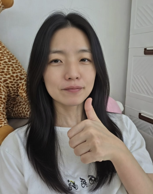 공개된 사진 속 안영미는 화장기 거의 없는 자연스러운 얼굴로 카메라를 바라보며 엄지를 치켜세우고 있다. 차분하게 내려온 긴 생머리가 눈길을 끈다.