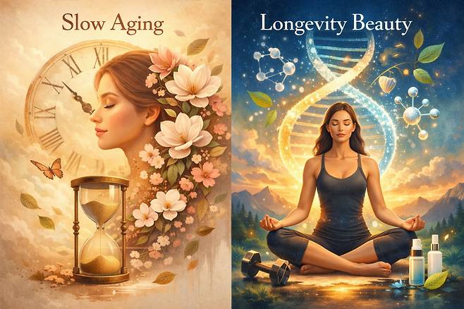 요즘 뷰티 업계에서 자주 들리는 키워드는 ‘슬로우 에이징’(Slow aging)과 ‘롱제비티 뷰티’(Longevity Beauty)다. 둘 다 그럴싸한 신조어이지만, 완전히 새로운 이야기는 아니다. 슬로우 에이징은 노화를 거꾸로 돌리겠다는 욕심 대신, 노화의 속도를 관리하자는 접근에 가깝다.