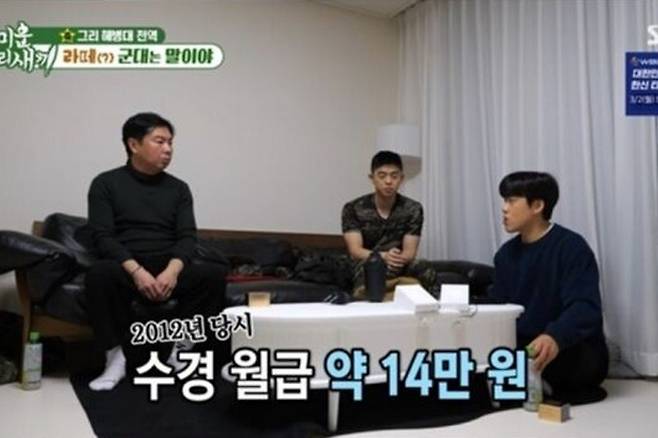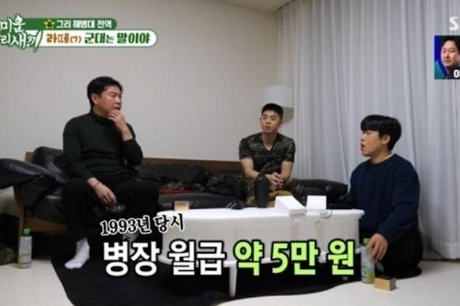 이날 그리는 임원희가 군 생활하던 시절과는 많이 달라졌다며 ‘군 월급’에 대해 털어놨다. 임원희는 “내가 이병 때 월급 8천 원을 받았고, 병장 때는 5만 원이었다”라며 당시 생활을 회상했다. 그는 90년대 초반 육군 1사단 GOP에서 근무한 바 있다. 그리는 “나는 병장 때 150만 원 받았다. 적금까지 합치면 200만 원”이라고 밝혀 모두를 놀라게 했다. 조진세가 “목돈을 모아올 수 있겠다”라며 부러워하자, 그리는 “2천만 원 가까이 모았다, 병장으로 월급도 많이 받고 하는 일이 적어지니 눌러살고 싶다는 생각을 갑자기 하게 되더라. 마지막 3주는 사회 나가서 바로 일 없으면 조금 더 있고 싶다는 생각이 들었다”라고 솔직하게 털어놔 웃음을 안겼다.