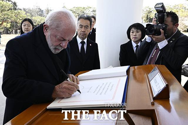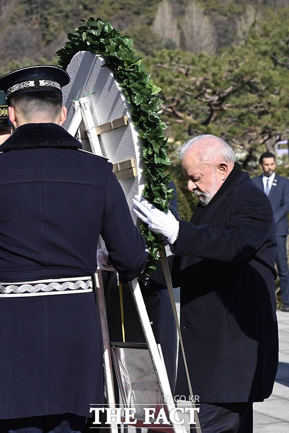 [더팩트 | 송호영 기자] 국빈 방한 중인 루이스 이나시우 룰라 다시우바 브라질 대통령이 23일 오전 서울 동작구 국립서울현충원 현충탑에서 분향을 하고 있다.