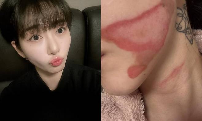 공개된 사진 속에는 권민아가 얼굴 피부 부위에 심각한 화상을 입은 모습이 담겨있다.