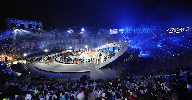 | ▲ 22일(현지시간) 이탈리아 베로나 아레나에서 2026 밀라노-코르티나담페초 동계올림픽 폐회식이 열리고 있다. |