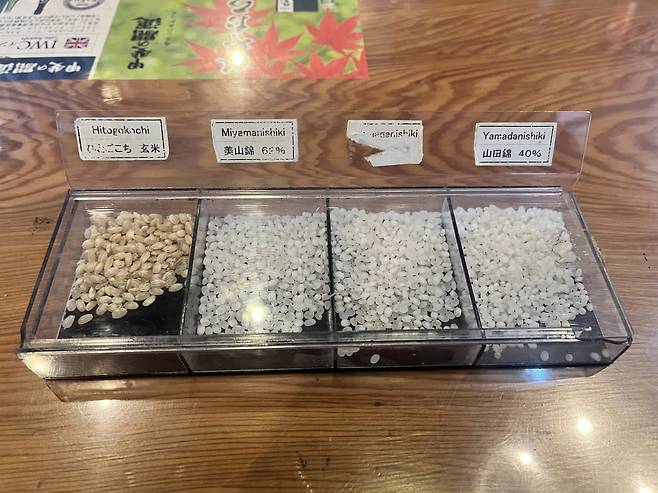여기에 쌀을 얼마나 깎아냈느냐에 따라 한 번 더 이름이 붙게 된다. 쌀의 바깥쪽에는 단백질과 지방이 많아 이를 많이 깎아낼수록 술맛이 깨끗하고 향기로워진다. 쌀을 40% 이상 깎아내고 60% 이하만 남겨 빚으면 '긴조', 절반 이상인 50%를 깎아내고 그 핵심만 사용해 정성껏 만들면 최고급인 '다이긴조'라는 이름이 붙게 된다. 그러니까 '준마이 다이긴조'라고 쓰여 있다면, 쌀을 절반 넘게 깎아 만든 가장 순수하고 고급스러운 술이라고 이해하시면 된다.