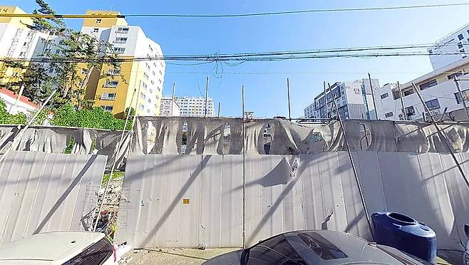 이번 공매시장에 등장한 가장 덩치 큰 매물은 신광로터리 대도변에 추진된 주상복합아파트 사업이다. 2022년 건축허가를 받았지만 지금껏 허허벌판으로 남아 있다.