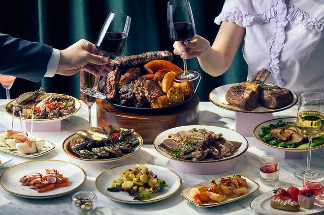 이번 프로모션은 셰프의 정교한 조리로 완성한 텍사스 스타일 바비큐와 파리 감성의 디저트 뷔페를 함께 구성한 것이 특징이다. 오크 배럴 셰리칩으로 훈연한 프리미엄 우대갈비와 차돌양지, 참숯으로 구워낸 채끝 등심과 부채살, 양갈비, LA 갈비 등 다양한 특수 부위를 두 가지 방식으로 선보여 깊은 풍미를 끌어올렸다. 팝오버 브레드와 구운 채소, 셰프 특제 소스도 곁들여 취향에 따라 즐길 수 있도록 했다.