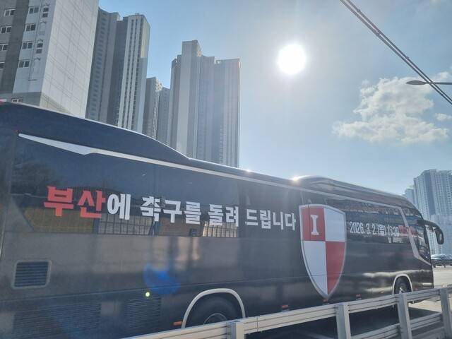 "부산에 축구를 돌려드립니다" '명가' 부산, 2026시즌 홈 개막전 앞두고 '승격 의지' 담은 래핑 버스 공개