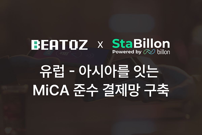 블록체인 기술 기업 비토즈(BEATOZ)는 영국 빌론 그룹(Billon Group)의 계열사인 폴란드 ‘스테빌런’과 법정화폐 연동 전자화폐 토큰(EMTs) 기반 결제·정산 및 사업 확장을 위한 양해각서(MOU)를 체결했다고 23일 밝혔다.