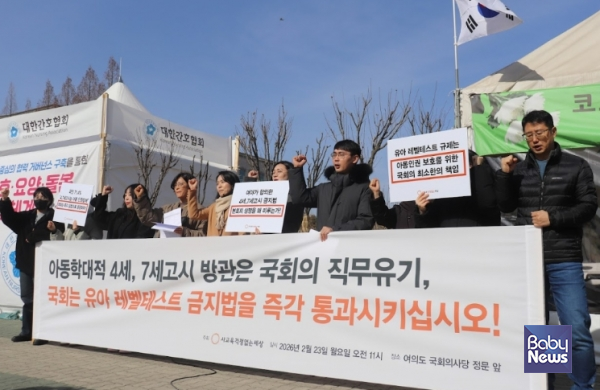이어 "미취학 아동을 시험이라는 고도의 긴장 환경 속에 세워 선발의 공포를 경험하게 하고, 수능 수준에 비견되는 고난도 지문을 읽고 쓰도록 준비시키는 인권말살적 시장의 일탈을 막아보자는 최소한의 입법적 책임을 국회는 왜 외면하는 것"이냐며 "시간이 많지 않다. 조기 사교육 경쟁을 제어하지 못한다면 교육격차 완화도, 출생률 반등도 공허한 구호에 그칠 수밖에 없다"라고 주장했다.