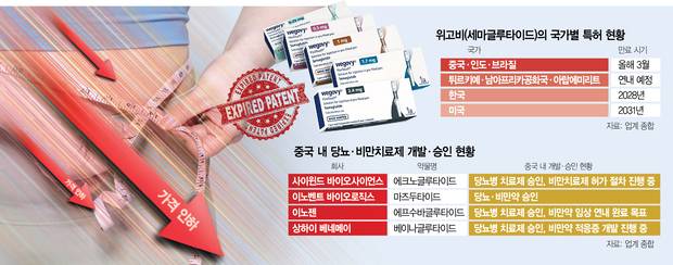 23일 업계에 따르면 위고비의 주성분인 ‘세마글루타이드’의 물질 특허는 3월 20일 중국에서 만료된다. 특허는 국가별로 출원·등록·연장 제도가 다른 ‘속지주의’를 따르는 만큼 당장 글로벌 시장에 미치는 영향은 제한적일 것으로 분석된다. 다만 중국을 시작으로 인도, 브라질 등에서도 특허 만료가 잇따를 예정이어서 저렴한 복제약이 시장에 출시되면 가격 인하 압박이 전 세계로 확산될 가능성이 크다.
