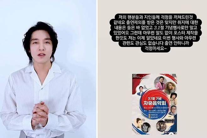 [SBS연예뉴스 ㅣ 강경윤 기자] 전 한국사 강사이자 보수 성향 유튜브 채널 운영자인 전한길이 주최하는 3·1절 기념 콘서트가 또다시 출연진 이탈 사태를 맞았다. 발레리노이자 뮤지컬 배우 정민찬이 "사전 동의 없이 포스터에 사진이 게재됐다"며 불참을 공식화했다.