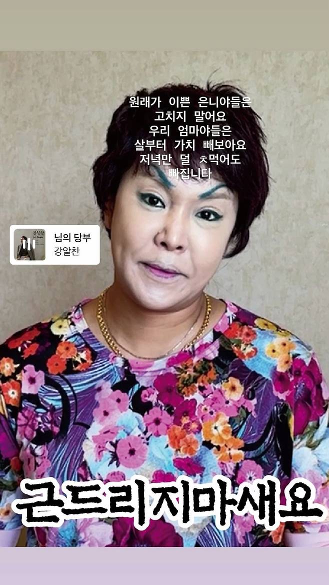 이어 랄랄은 ‘부캐 이명화’ 특유의 분장을 한 채 영상을 통해 팬들에게 조언을 남겼다. 그는 “원래가 이쁜 언니들은 고치지 말아요”라고 강조하며 무분별한 성형에 대해 경계하는 모습을 보였다. 또한 어머니들을 향해서는 “살부터 같이 빼봐요. 저녁만 덜 먹어도 빠지니깐”이라며 유쾌하면서도 현실적인 다이어트 권유를 덧붙였다.