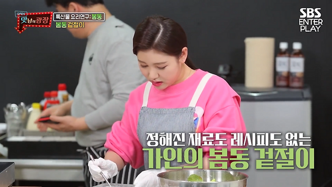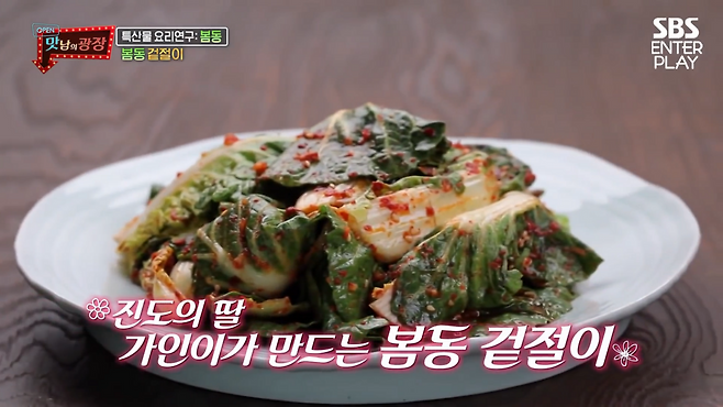 송가인은 SBS 〈맛남의 광장〉에서 자신의 필살기인 봄동 겉절이를 선보인 적이 있어요. 음식 잘하기로 유명한 전라남도 진도군 출신 송가인에게 나물 무침은 요리 실력을 가감 없이 보여줄 수 있는 좋은 무기였죠. 방송에서 송가인은 계량도 없이 슥슥 겉절이를 무치는 모습으로 놀라움을 안겼습니다. 그의 비법은 굵은 고춧가루와 고운 고춧가루를 함께 쓴다는 것이었어요. 이렇게 하면 맛은 물론 색감까지 완벽하게 잡을 수 있습니다. ‘무엇을 더 넣을까’ 잠깐 고민하던 송가인은 즉흥적으로 깨와 참기름, 설탕을 자신만의 비율로 더했어요. 맛 평가 맵기로 유명한 백종원 앞에 긴장된 표정으로 봄동 겉절이를 내놓았던 그였는데요. 송가인 표 봄동 겉절이는 백종원에게 '별 다섯 개'를 받았답니다. '밥과 먹으면 딱 맞는다'는 호평도 있었으니, 겉절이로 비빔밥까지 뚝딱 만들 수 있겠네요.