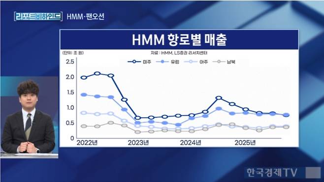 이재혁 LS증권 연구원은 23일 한국경제TV에 출연해 "HMM의 영업이익 역량은 글로벌 경쟁사와 비교해도 압도적인 수준"이라며 "주요 컨테이너 선사들이 적자로 돌아선 구간에서도 두 자릿수 영업이익률을 유지했다"고 말했다.