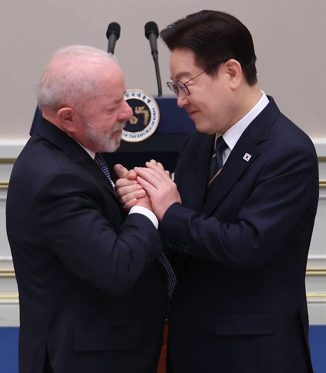 이재명 대통령이 23일 청와대 영빈관에서 열린 국빈 만찬에서 루이스 이나시우 룰라 다시우바 브라질 대통령을 '친구'라고 불렀다. 룰라 대통령도 "이 대통령의 인생을 알고나서부터 우리가 형제처럼 느껴진다"고 화답했다. '소년공 출신으로 부조리한 사회 현실을 바꾸고자 정치에 투신했다'는 동질감이 두 정상을 단단하게 엮었다.