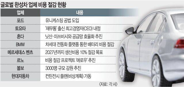 프랑스 르노는 지난해 10월부터 ‘애로우(Arrow)’라는 이름의 비용 절감 프로젝트를 추진 중이다. 이를 통해 인사, 재무, 마케팅 등 부문의 직원 수를 약 15% 줄일 계획이다. 볼보도 3000명 규모 감원과 투자 축소를 통한 비용 절감에 나서고 있다.