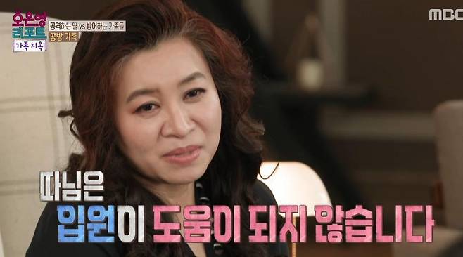23일 방송된 MBC '오은영 리포트-가족 지옥'에서는 가족에게 거친 폭력성을 드러내는 둘째 딸과 그런 딸을 숨죽이며 눈치보는 가족, '공방 가족'의 사연이 그려졌다.