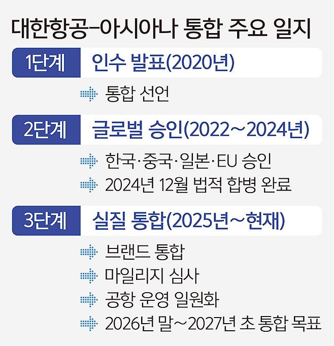 인천국제공항 제2여객터미널 이전 등 물리적 통합도 가시화됐지만, 마일리지 개편안 승인이라는 관문과 임금·조직문화 통합이라는 내부 과제가 여전히 남아 있다.
