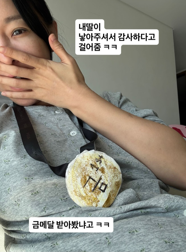 ‘인중축소’ 이지혜, 딸이 건 금메달…“낳아줘서 감사”