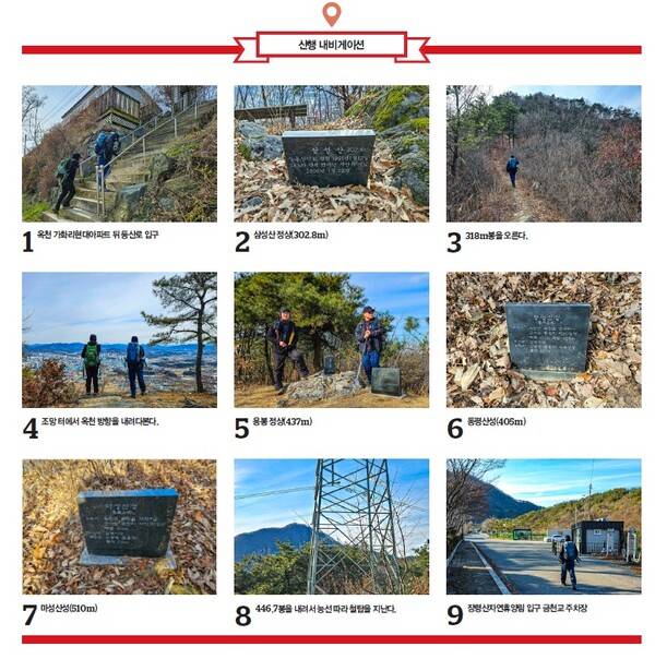 백제와 신라의 전투인 관산성 전투를 돌아보는 이번 코스는 산성에서 산성으로 이어진다. 이른 아침 옥천에서 든든한 올갱이해장국으로 아침 식사하고 들머리로 향한다. 삼성산, 용봉, 마성산 구간은 동네 뒷산 산책 느낌이다. 오르는 방향은 크게 두 곳이다. 향수한우판매타운과 가화현대아파트 뒤편 옥천교회 옆 등산로. 두 곳 모두 주차장은 따로 없으니, 대중교통을 이용하거나 길가에 주차 후 산행을 시작하면 된다.