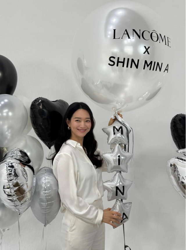 행사장에는 ‘LANCÔME X SHIN MIN A’ 문구가 새겨진 대형 벌룬과 ‘MINA’ 이니셜이 담긴 실버 풍선이 장식돼 눈길을 끌었다. 브랜드와 함께한 자리에서도 특유의 단아한 미소로 존재감을 드러냈다.