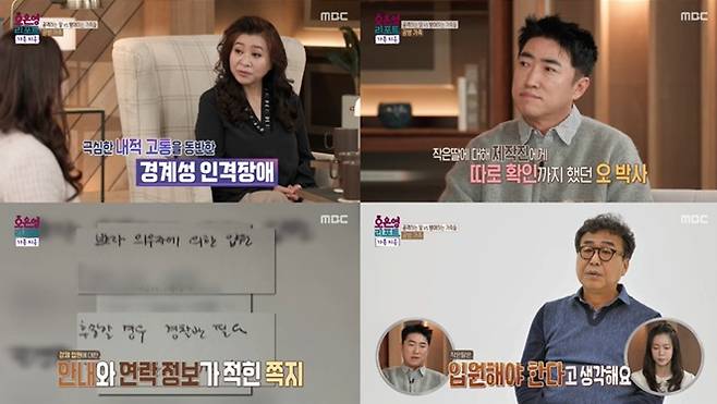 아빠는 둘째 딸에게 경계성 성격 장애가 있다고 믿고 있었다. 의사로부터 감정 조절을 돕는 약을 처방받았으나 딸이 이를 전혀 복용하지 않았다고. 심지어 한 상담사는 강제 입원이 가능한 병원의 연락처까지 메모로 건네줬다고 밝혔다. 아빠는 "우리라도 살아야 하는데 도저히 해결이 안 되니까 입원해야 한다고 생각한다. 호적 정리도 할 수 있으면 해야겠다"라고 토로해 눈길을 끌었다.