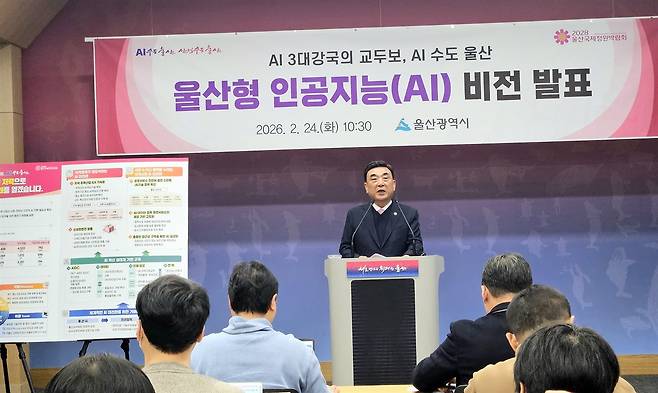 AI 대전환과 관련해 "핵심은 울산 주력산업에 AI 도입을 확산하는 것"이라며 "대기업 중심으로 AI 팩토리 전환을 확대하고 중소기업의 AI 전환은 지원하면서 기업 참여를 확산시키고 주력산업에 특화된 AI 핵심기술을 확보하겠다"고 밝혔다.