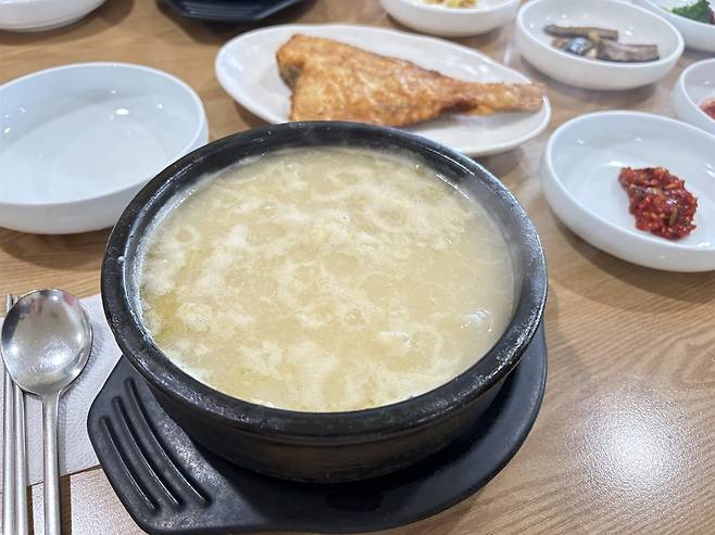 오전 8시쯤 도착한 식당 앞에는 벌써 열 팀 정도 대기가 있었다. 30분을 기다리고서야 황태해장국을 마주했다. 예전 주방과 홀을 오가던 아주머니들 대신 외국인 노동자들이 분주히 일하고 있었다. 작은 시골 식당 안에서도 시대의 변화를 실감했다. 그래도 맛은 여전했다.