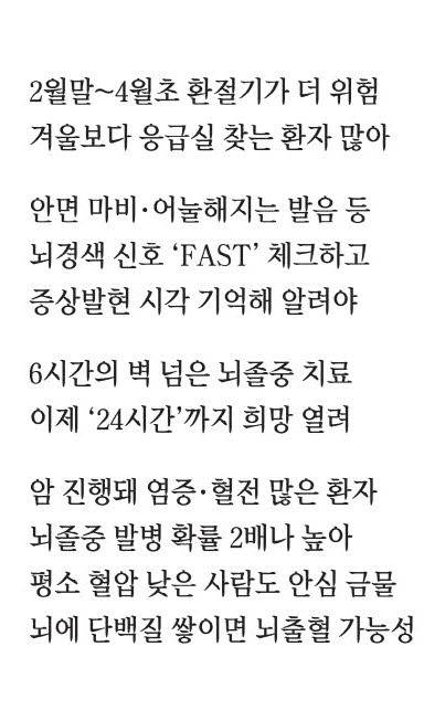 건강한 '혈관의 봄' 맞이하려면 … 뇌졸중 신호 놓치지 마세요