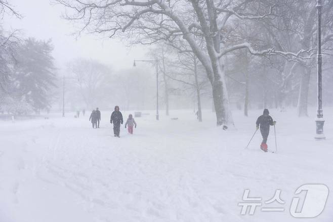 (뉴욕 AFP=뉴스1) 권영미 기자 = 23일(현지시간) 미국 뉴욕 브루클린 주민들이 눈보라 속에서 프로스펙트 파크를 걸어다니거나 스키를 타며 다니고 있다. 2026.02.23.