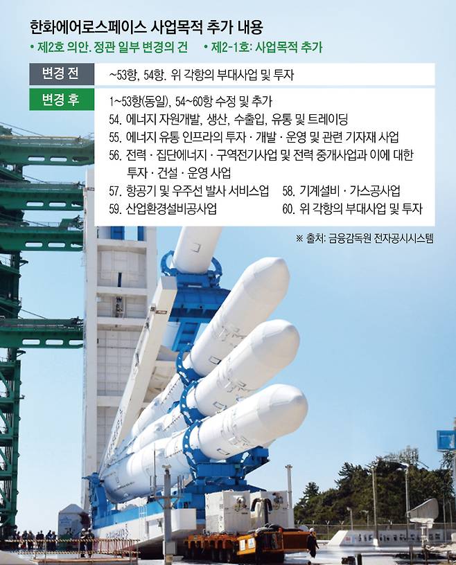 우주 분야 사업 추가도 주목된다. 한화에어로스페이스는 이미 한국형 발사체 누리호의 4~6차 발사를 총괄하며 국내 우주산업에서 핵심 역할을 수행하고 있다. 그동안은 발사체 제작 중심으로 사업에 집중해 왔다면, 이번 사업 목적 추가로 민간 우주항공 영역을 본격적으로 확장할 것으로 보인다.
