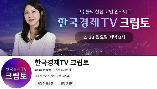 한국경제TV는 디지털자산을 전문적으로 다루는 유튜브 채널 '한국경제TV 크립토'를 개설하고 2월 23일 오후 8시 첫 방송을 시작했다.