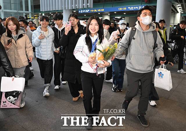 [더팩트ㅣ인천국제공항=박헌우 기자] 2026 밀라노·코르티나담페초 동계올림픽 일정을 마친 쇼트트랙 김길리가 24일 오후 인천국제공항을 통해 귀국하고 있다.