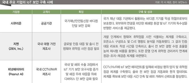 ▲국내 주요 기업의 IoT 보안 구축 사례 [출처: 각 사 제공, 정리: 보안뉴스]