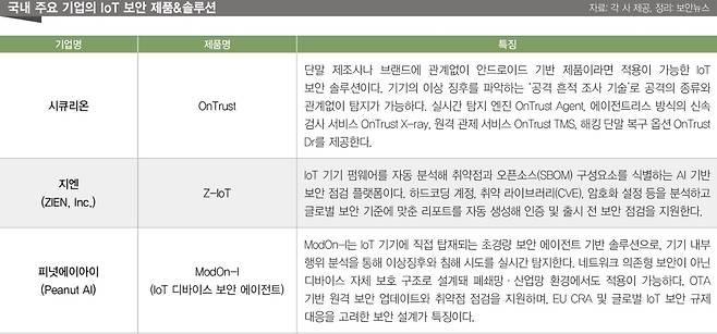 ▲국내 주요 기업의 IoT 보안 제품&솔루션 [출처: 각 사 제공, 정리: 보안뉴스]
