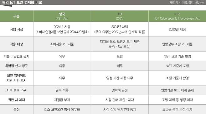 ▲해외 IoT 보안 법제화 비교 [정리: 보안뉴스]