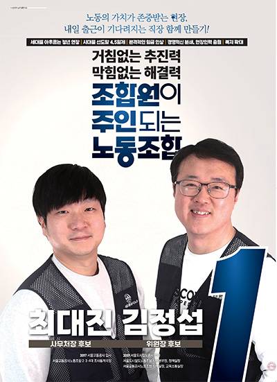 서울교통공사노조 5대 임원선거에서 단독 출마한 김정섭(51) 위원장·최대진(46) 사무처장 후보조가 당선됐다.