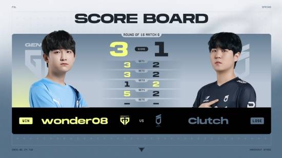 연장전 돌입 후 다시 앞서간 wonder08. 그는 연속으로 득점을 기록해 승기를 굳혔고, 전후반과 연장 포함 5대2로 경기를 마무리했다. 그리고 이 경기를 통해 세트스코어 3대1 승리와 8강 진출을 확정했다.
