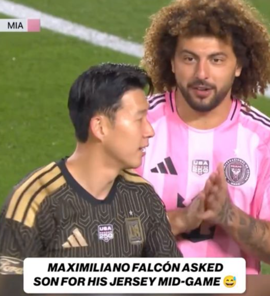경기 중반, 예상 밖의 장면이 포착됐다. 인터 마이애미 수비수 막시밀리아노 팔콘이 전반 20분 무렵 손흥민에게 다가가 유니폼 교환을 요청했다.