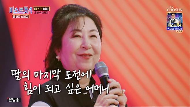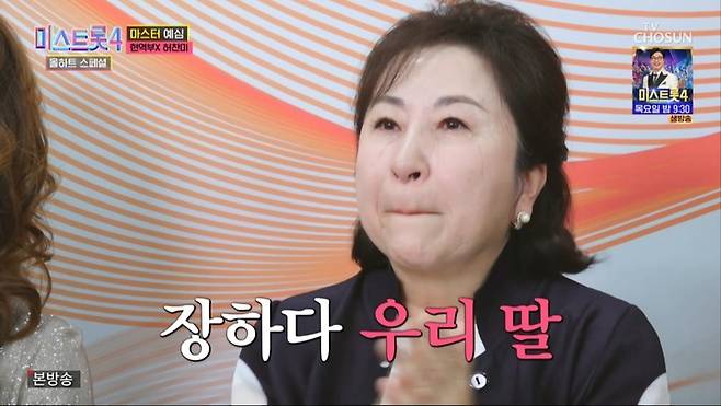 24일 방송된 '미스트롯4 올하트 스페셜'에서는 가수 허찬미와 그의 어머니 김금희가 나란히 올하트를 받으며 본선에 진출했던 순간이 재조명됐다.