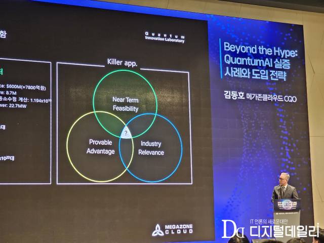 김동호 메가존클라우드 최고양자책임자(CQO)는 글로벌 실증 데이터와 투자 현황을 근거로 퀀텀AI 도입 전략을 제시했다. 그는 “퀀텀AI는 국가 경쟁력, 나아가 기업 경쟁력의 핵심 축으로 부상하고 있어 선제적인 기술 개발 투자가 시급한 시점”이라고 강조했다.