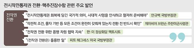 문제는 대북 유화책이 전작권 전환 가속화에 영향을 미칠 수 있다는 점이다. 국방부는 전작권 전환과 관련, 올해 11월에 열리는 제58차 한·미안보협의회의(SCM)에서 미래연합군사령부 완전운용능력(FOC) 검증을 완료한다는 방침이다. 이를 위해 3∼8월 한·미 연합훈련을 통한 공동 평가 등을 추진할 예정이다.