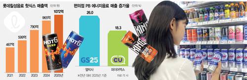 유통 채널에서도 에너지음료 매출이 가파르게 늘고 있다. 편의점 GS25에 따르면 지난해 에너지음료 매출은 전년 대비 26% 증가했다. 상품 수도 2024년 52개에서 지난해 65개로 늘었다. 특히 GS25가 지난해 6월 동아제약과 협업해 출시한 PB ‘얼박사’는 누적 매출 130억 원을 돌파하며 최근 3개월 연속 음료 매출 1위를 기록하고 있다. GS25 관계자는 “에너지음료는 직장인과 대학생을 중심으로 큰 호응을 얻으며 음료 전체 카테고리에서 핵심 상품으로 떠오르고 있다”며 “얼박사 등 주력 상품의 매출 상승세에 따라 향후 신상품 출시를 확대할 계획”이라고 강조했다.