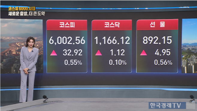 코스피가 25일 사상 처음으로 6,000선을 돌파했다.