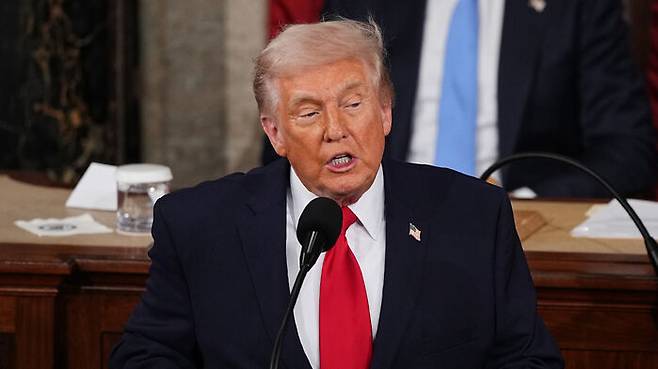 도널드 트럼프 미국 대통령이 현지시간 24일 밤 워싱턴DC 연방 의회 의사당에서 열린 상하원 합동회의에서 한 집권 2기 첫 국정연설에서 "미국은 그 어느 때보다 더 크고, 더 나아지고, 더 부유해지고, 강해졌다"면서 "지금이 바로 미국의 황금시대"라고 말했습니다.
