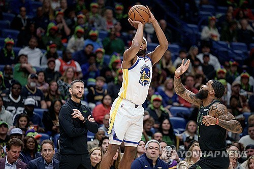 25일 미국 루이지애나주 뉴올리언스 스무디킹 센터에서 열린 NBA 2025-2026시즌 정규리그 골든스테이트와 뉴올리언스 펠리컨스의 맞대결.