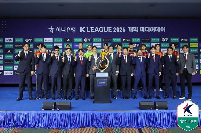 25일 오전 11시 서울 서대문구 소재 스위스그랜드호텔에서 하나은행 K리그1 2026 미디어데이가 개최됐다. 미디어데이 특성상 지난 시즌 순위대로 좌석이 배정된다. '디펜딩 챔피언' 전북현대는 정중앙, 2~6위 팀은 1열, 7~10위 팀은 2열이다. 가장자리는 승격 팀인 인천유나이티드와 부천FC1995에 돌아갔다.